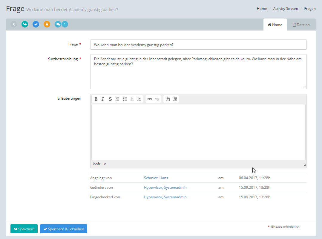 Mit dieser Anwendung können Sie die Fragen bearbeiten, die im Activity Stream gestellt wurden.