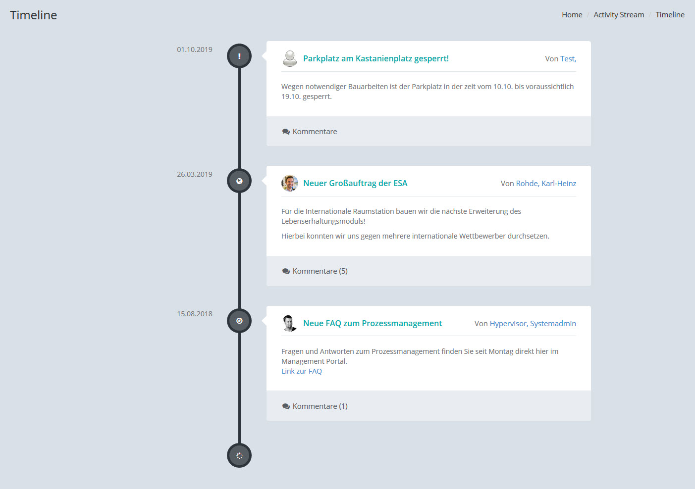 Die Timeline kann auch auf der User-Homepage der Website angezeigt werden.