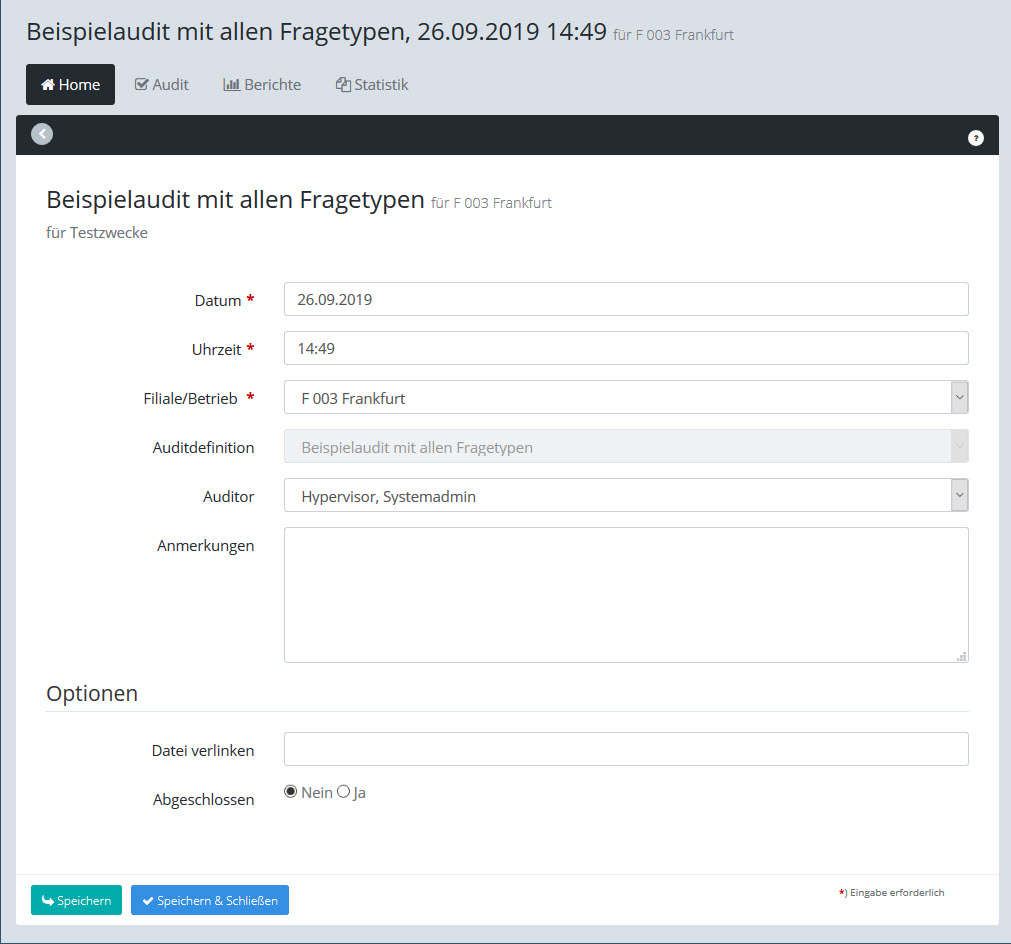 Uhrzeit des Audits im Format HH:MM, z.B. 16:25 |