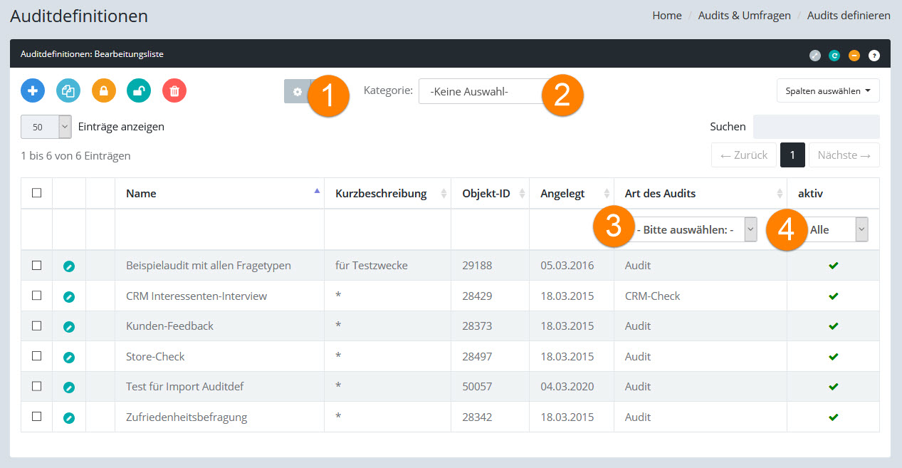 (4) Filtern von aktiven oder inaktiven Audit-Definitionen