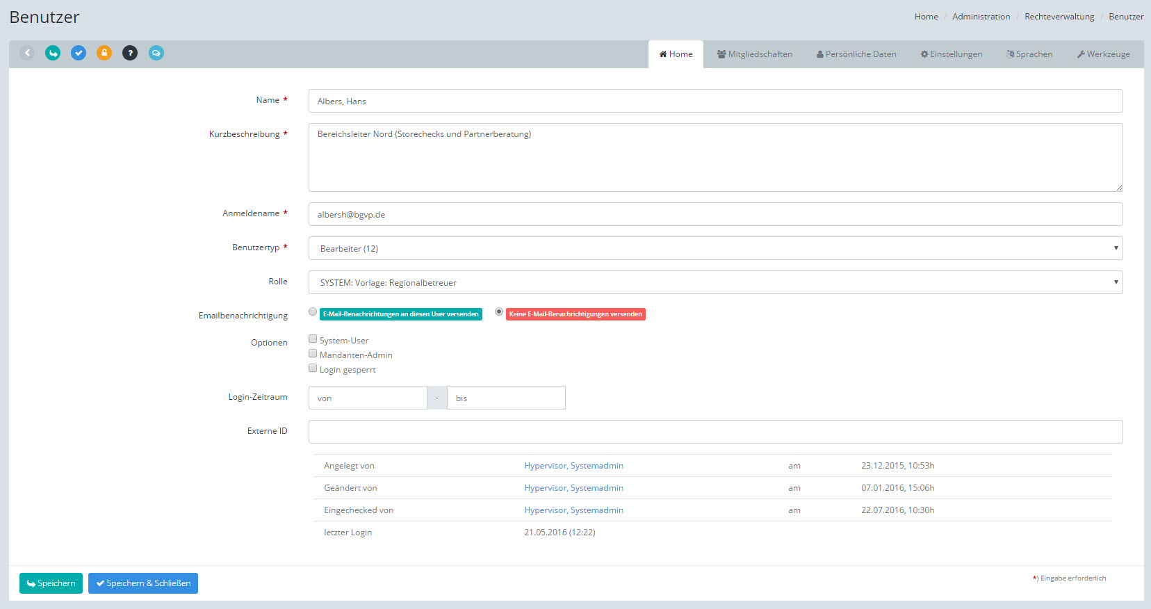 Benutzer: Stammdaten