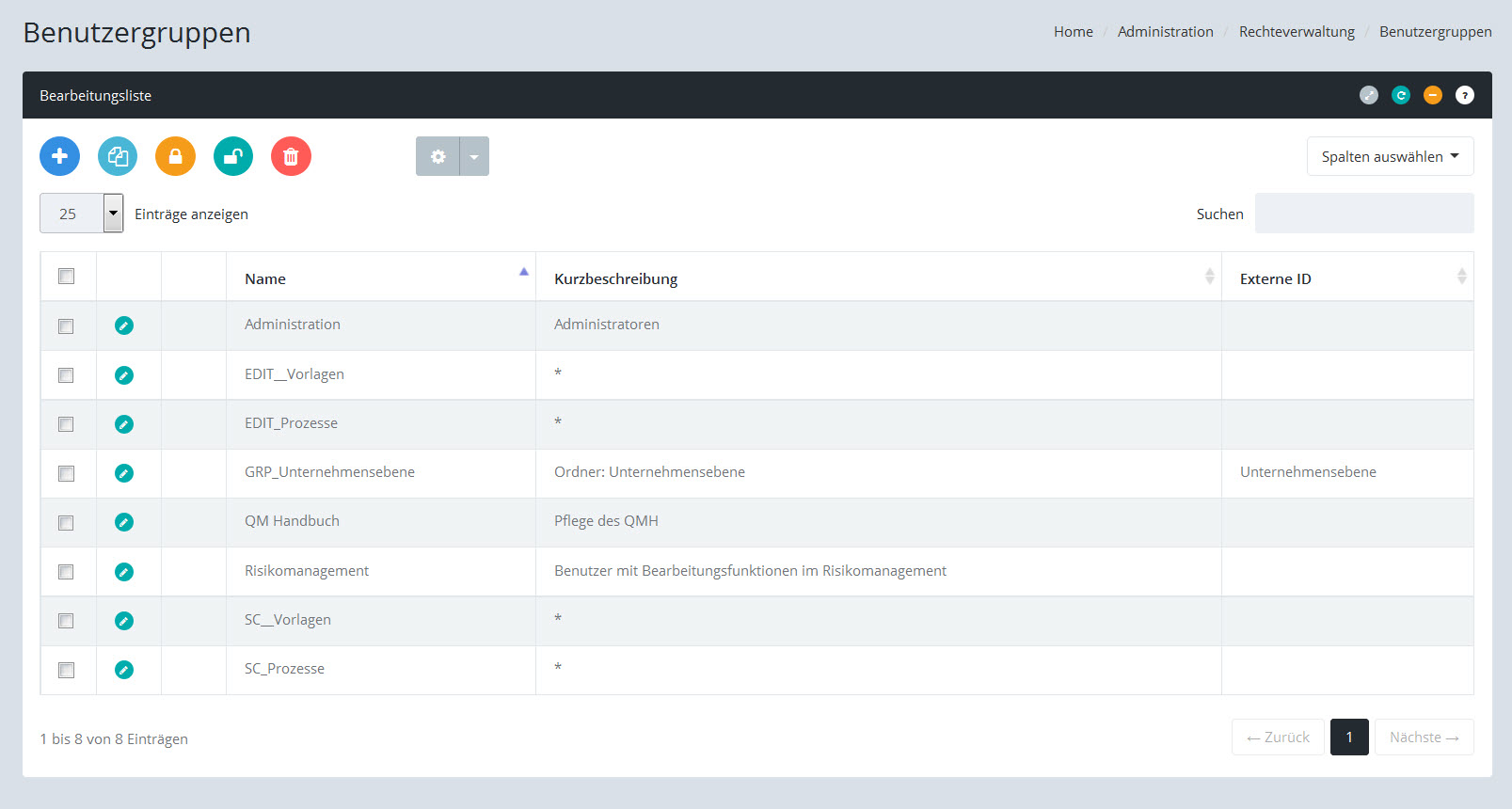 Menüpfad: Administration / Rechteverwaltung / Benutzergruppen
