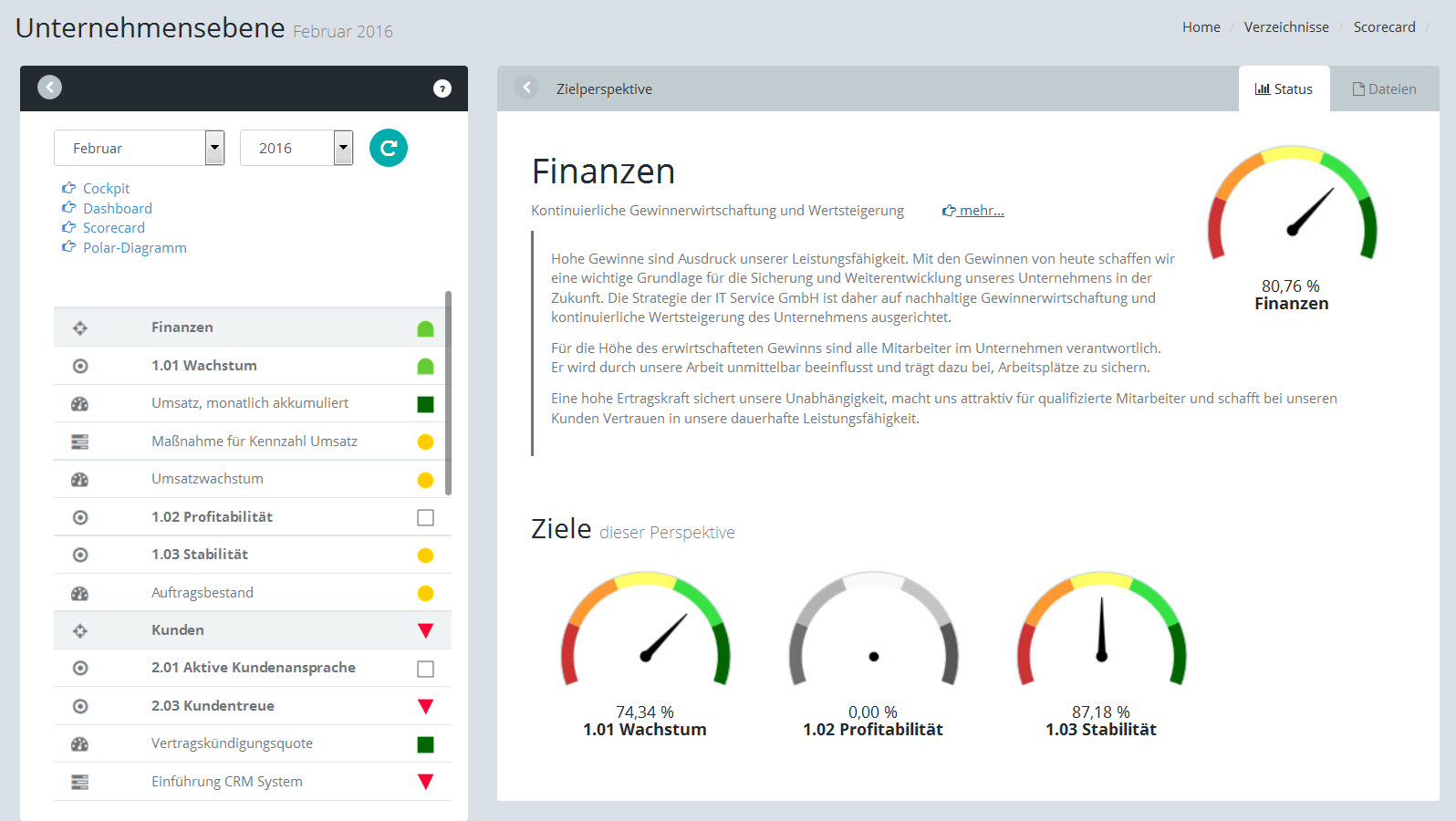 Durch Anklicken einer Perspektive in der Scorecard wird die Detailansicht angezeigt: