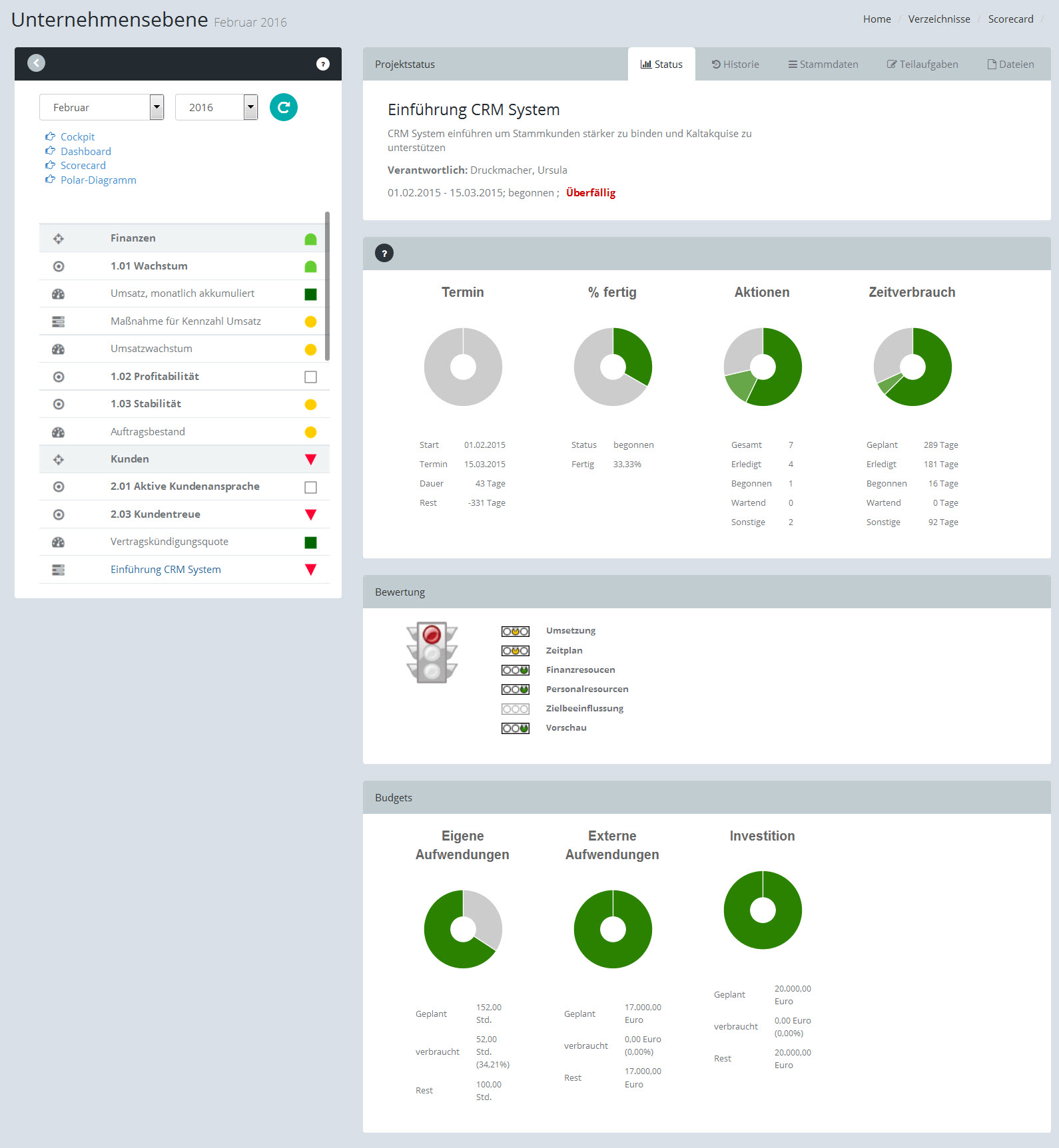 Durch Anklicken eines Projektes in der Scorecard und zahlreichen weiteren Ansichten wird die Detailansicht des Projektes angezeigt: