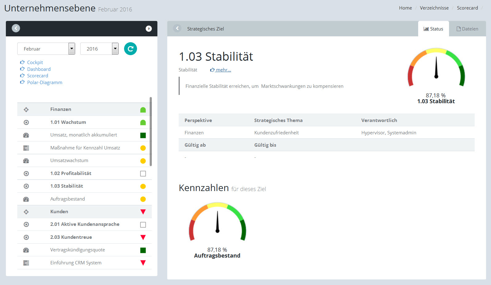 Durch Anklicken eines Strategischen Zieles in der Scorecard wird die Detailansicht angezeigt: