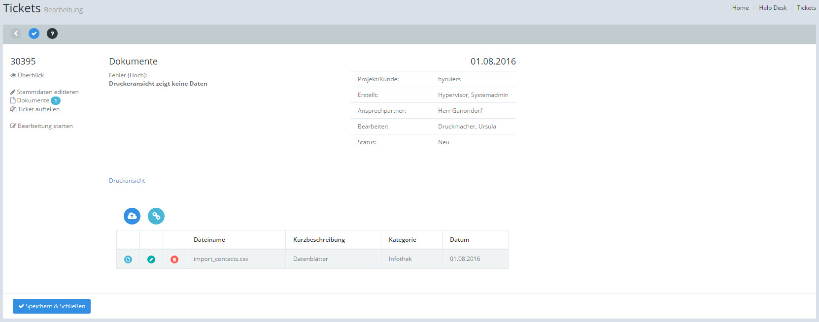 •Unter [Datei hochladen] können Sie ein neues Dokument, Bild etc. für das Ticket hochladen.