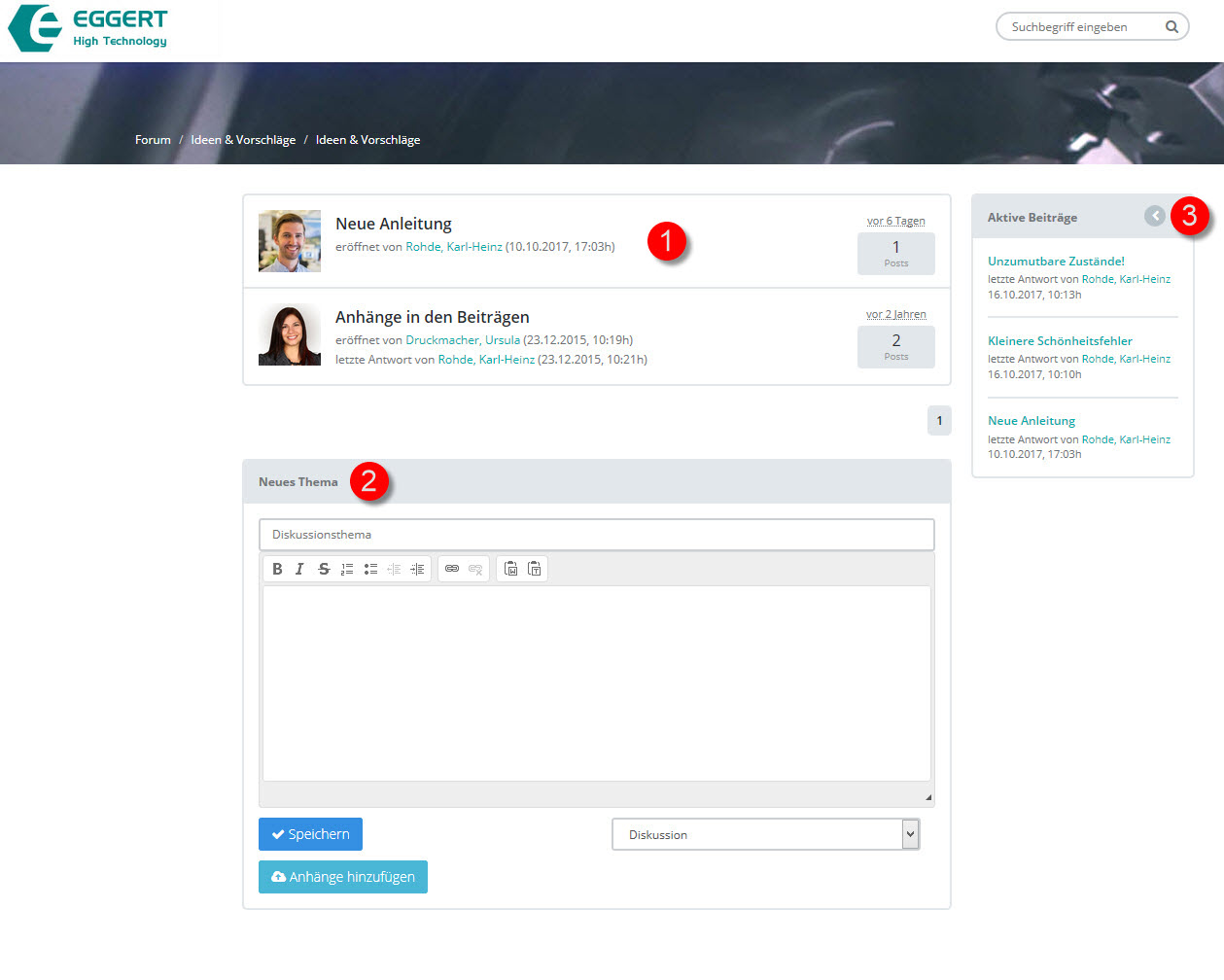 •Klicken Sie auf ein Thema (1) , um die Beiträge zu diesem Thema zu sehen