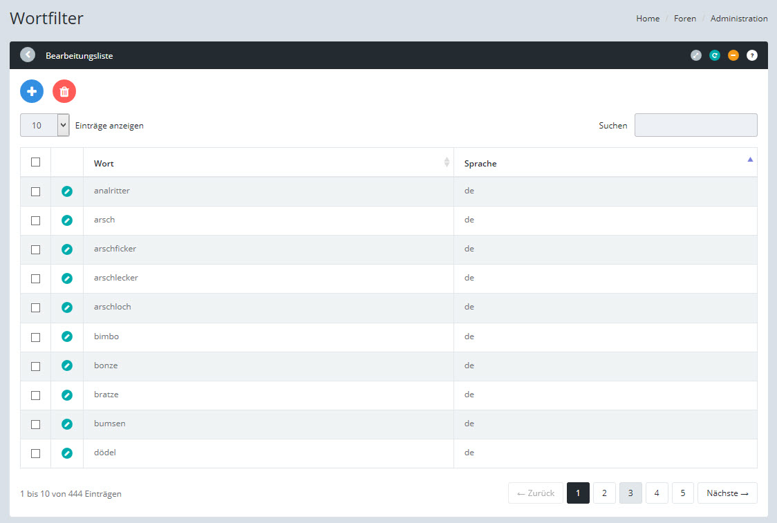 Wortfilter enthalten Schimpfworte und Vulgär-Ausdrücke, die in Forumsbeiträgen bei der Eingabe durch Sternchen ersetzt werden können: