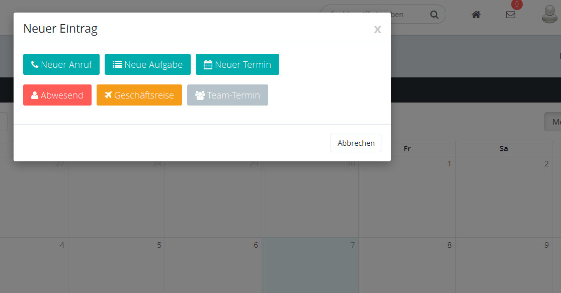 •Neuer Anruf - um einen Termin für einen Anruf einzutragen