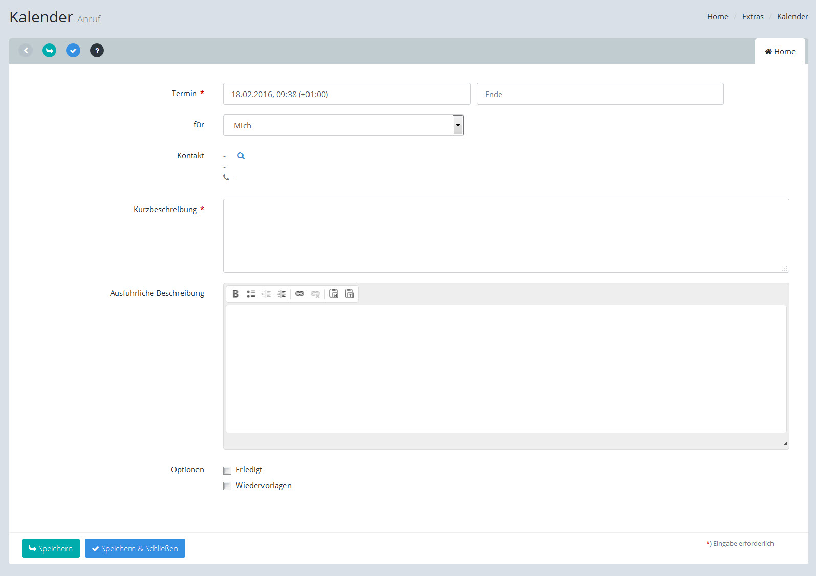 [Speichern & Schließen] übernimmt die gesamten Daten und Sie gelangen wieder zum Kalender.