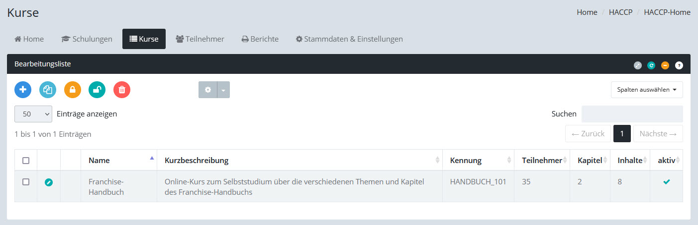 Bearbeitungsliste: Kurse