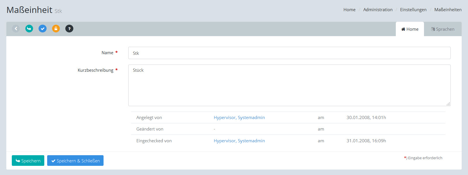 Maßeinheiten: Stammdaten