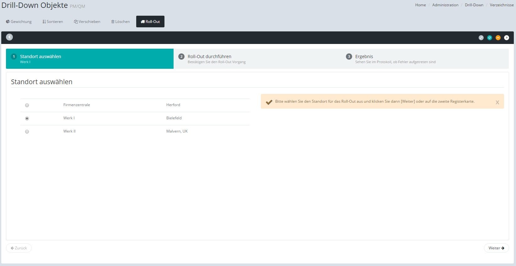 Drill-Down-Objekte: Roll-Out, Schritt drei