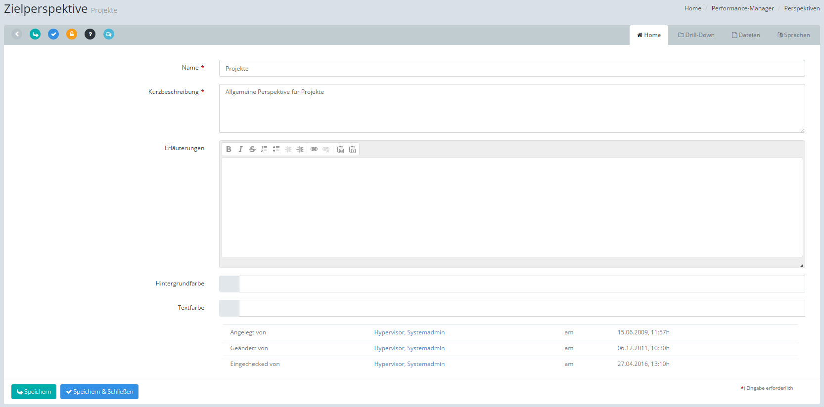 Eine Perspektive ist in den Scorecards nur dann sichtbar, wenn sie via Drill-Down der Scorecard zugewiesen wurde UND der aktuelle Benutzer ein Leserecht für die Perspektive besitzt.