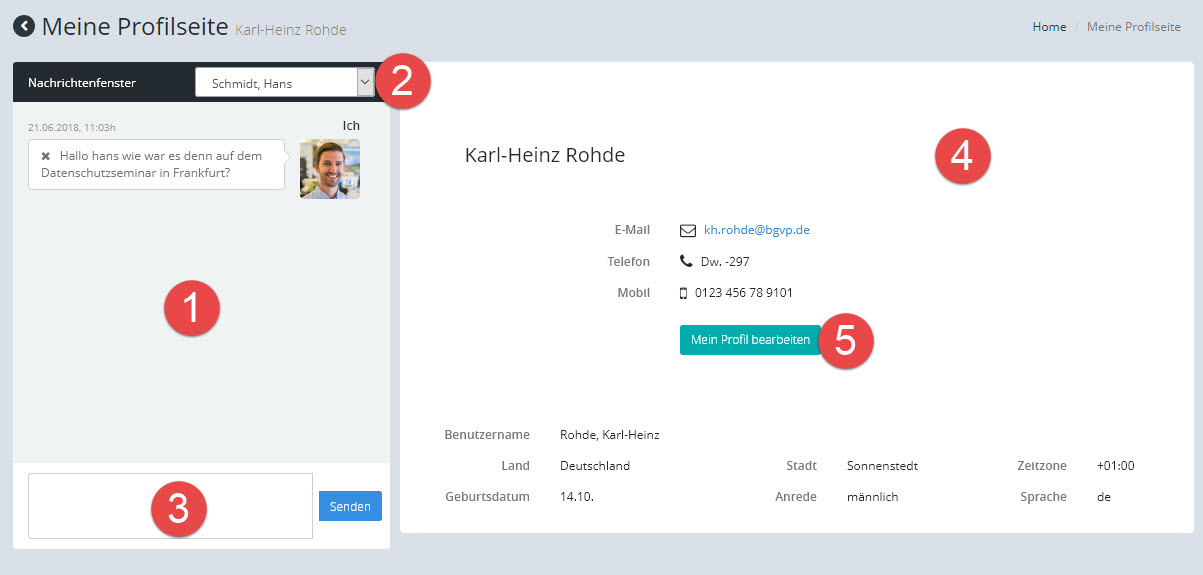 Jeder User hat eine eigene Profilseite, auf der persönliche Daten angezeigt werden.