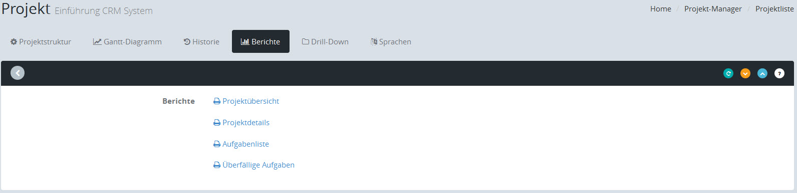 Durch diesen Bericht können Sie sich die überfälligen Aufgaben zu einem Projekt ausgeben lassen.