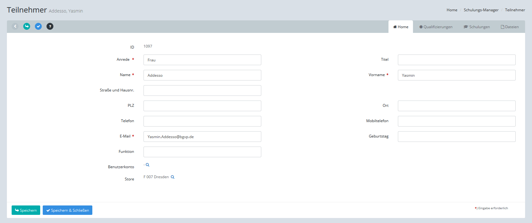 [Speichern & Schließen] speichert die Änderungen und kehrt automatisch in die Liste zurück.