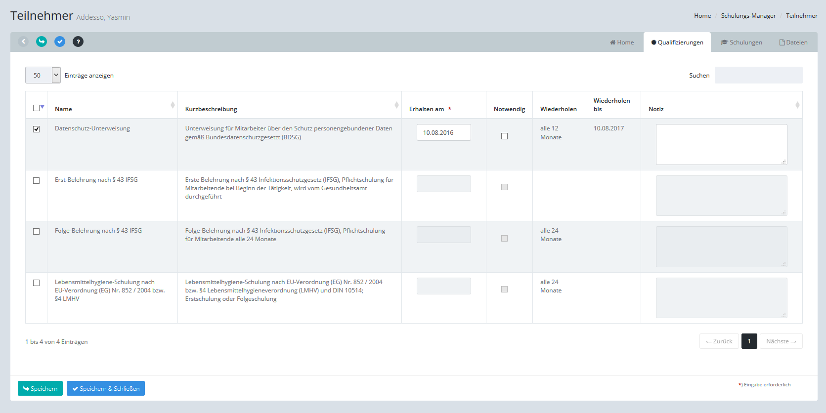 Damit bestätigen Sie, dass der Teilnehmer die Qualifizierung erhalten hat oder erhalten wird.