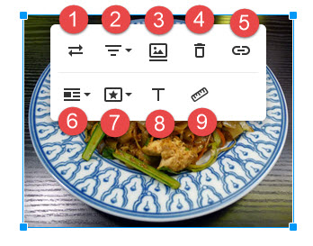 Nachdem Sie ein Bild eingebettet haben, können Sie es anklicken, um das zugehörige Bild-Menü anzuzeigen: