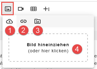 4.Ein Bild hineinziehen, um es einzubetten. Das Bild wird automatisch auf den hyperspace Server hochgeladen um im Dateimanager gespeichert. Es gehört aber zu diesem Textobjekt und wird automatisch mit gelöscht, wenn das zugehörige Textobjekt gelöscht wird.