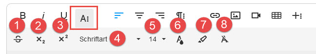 5.Schriftgröße: Öffnet eine Auswahlliste für die Schriftgröße (Werte in Pixel)