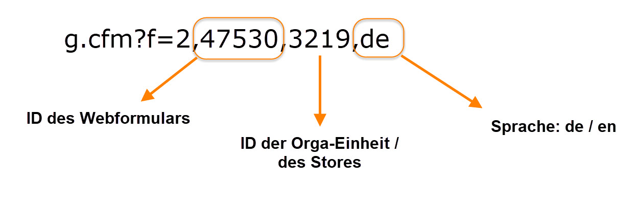 Die Aufruf-URL für ein Webformular besteht aus mehreren Komponenten: