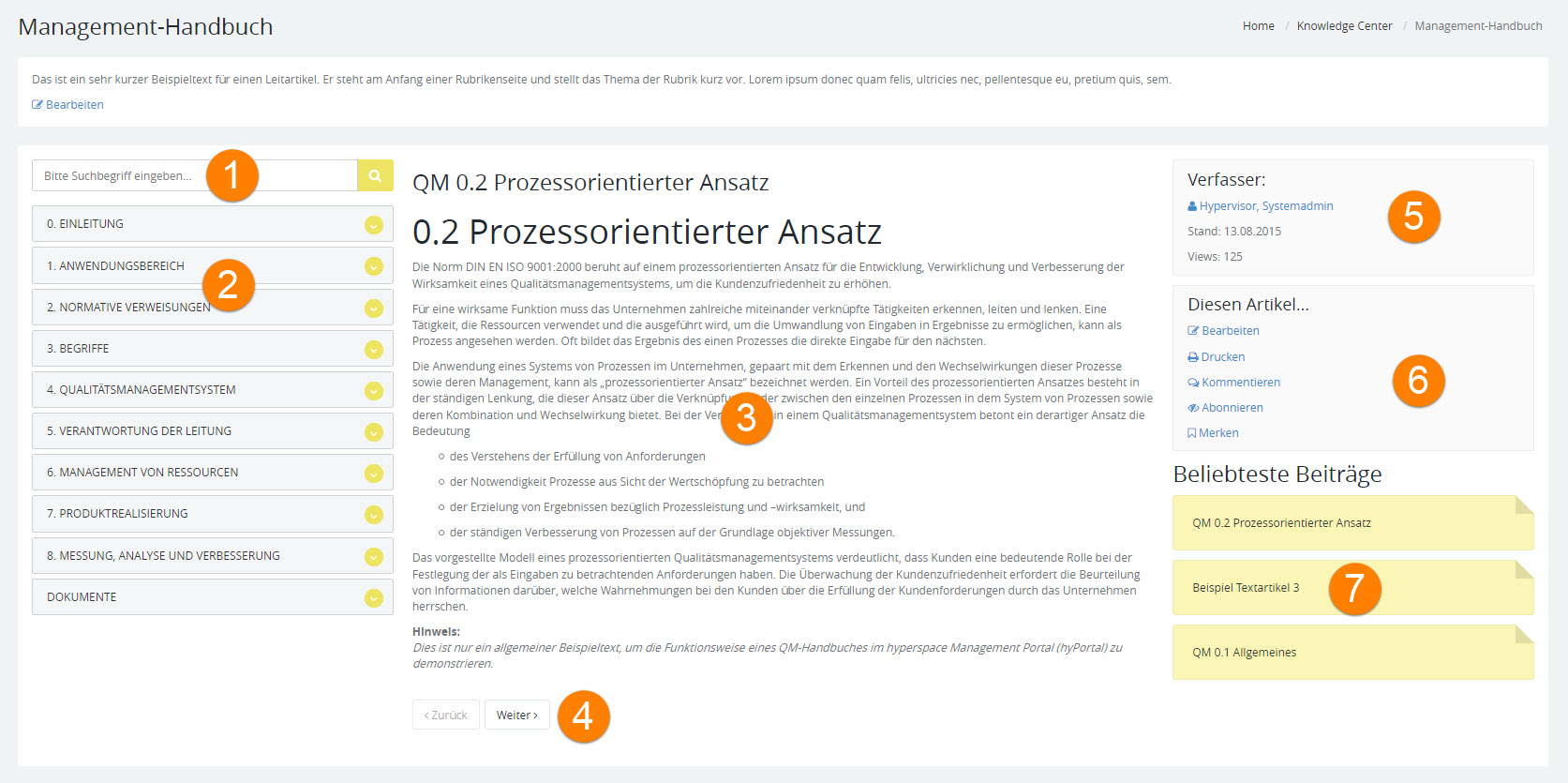 Mit der Seitenvorlage "Handbuch" ist es ganz einfach, eine ganze Dokumentenordner-Struktur in Form eines interaktiven Handbuchs auf der Website zu veröffentlichen: