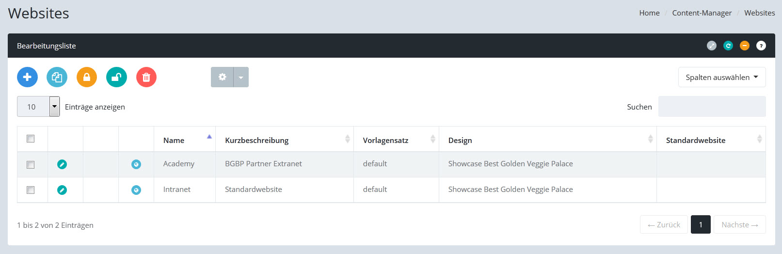 Die Bearbeitungsliste zeigt eine Liste aller Websites an, die Sie bearbeiten dürfen.